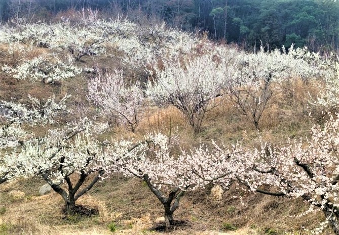 산자락이라 개화시기가 다른 지역에 비해 늦지만, 고향 마을을 둘러보듯 느긋하게 매화의 정취를 느낄 수 있다.