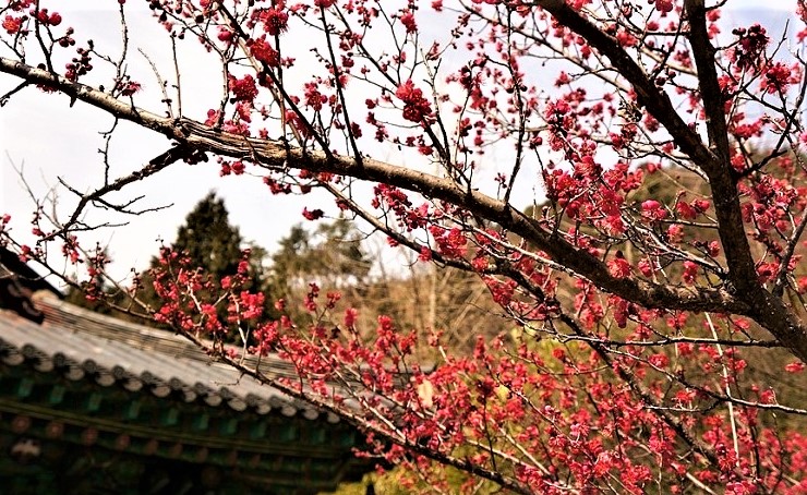 일주문을 지나 경내로 들어서면 동백, 금식나무, 벚나무, 철쭉 등 봄꽃나무들이 아담한 전각 사이로 합장하듯 서 있다. 선암사의 다양한 꽃나무 가운데 홍매화가 가장 먼저 꽃을 피운다.