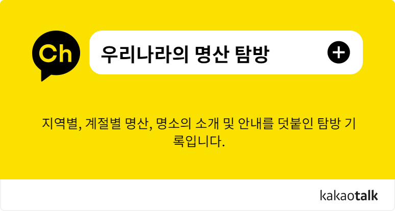채널 추가하시고 산행에 관한 다양한 정보를 자유롭게 공유하시기 바랍니다.