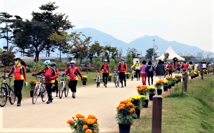 공원 가장자리에는 말끔한 자전거도로가 있어 가을바람을 쐬며 시원하게 자전거를 즐기는 이들도 많다.