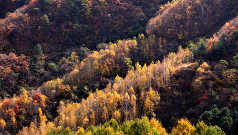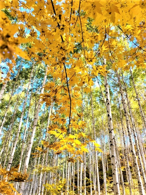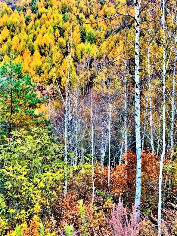 수산리 자작나무숲은 10월 말부터 11월 초까지 단풍이 초절정을 이룬다.