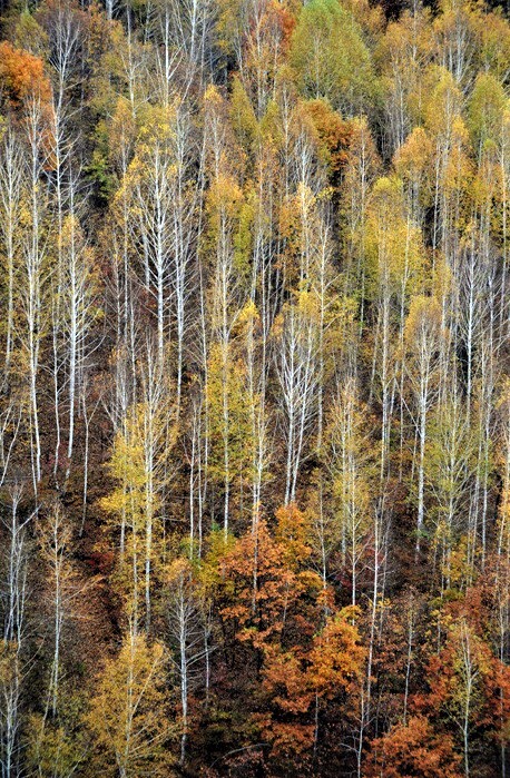 아무런 저항 없이 가을 햇살을 그대로 받아들인 한반도 지형의 자작나무숲은 온통 황금빛이다. 샛노란 차림으로 이 가을의 정점에 선 자작나무숲은 정숙하고도 늠름하다. 그렇게 이율배반적인 상황을 자작나무숲은 자연스럽게 연출해내고 있는 것이다.