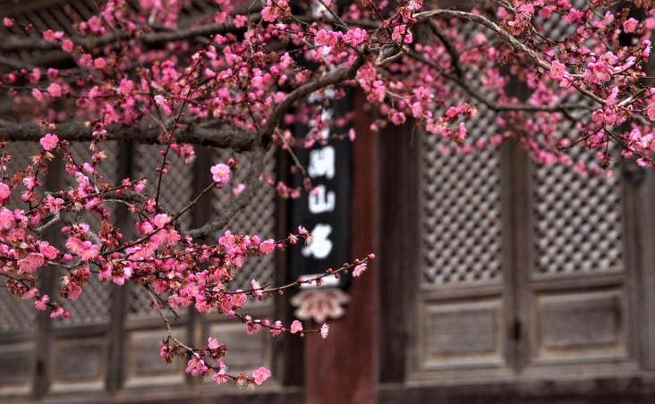 통도사 극락전에서 영산전을 뒤로 돌아가면 영각이 나오는데 영각 옆에 있는 진분홍색 매화는 볕이 잘 드는 곳에 있어 일찍 꽃을 피운다. 하얗게 펼쳐지는 봄, 그리고 자장매화라고도 일컫는 홍매화의 붉은 봄을 담기 위해 전국 각지에서 사진작가들이 모이는 장소가 바로 통도사이다.