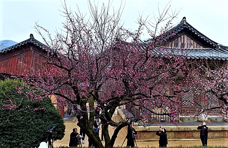 이곳 통도사에 매화와 홍매화가 흐드러지게 피면서 많은 이들의 시선을 끌어 모으고 걸음을 잡아당기고 있다.