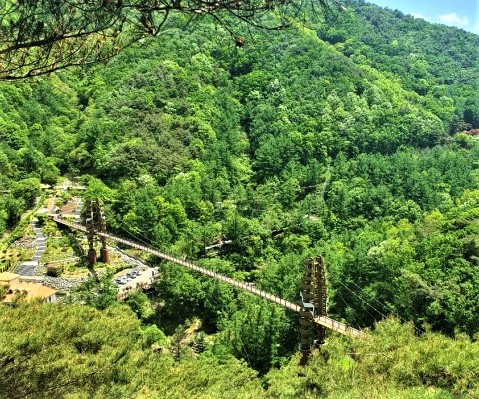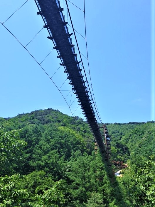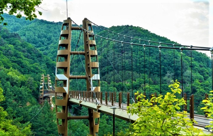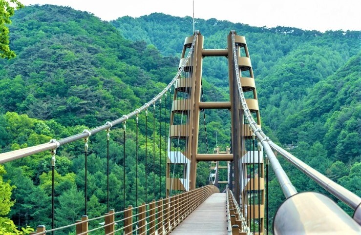 좌구산 서쪽 자락의 협곡을 이어주는 명상 구름다리는 전체 230m 중에서 130m가 출렁다리 구간이다.