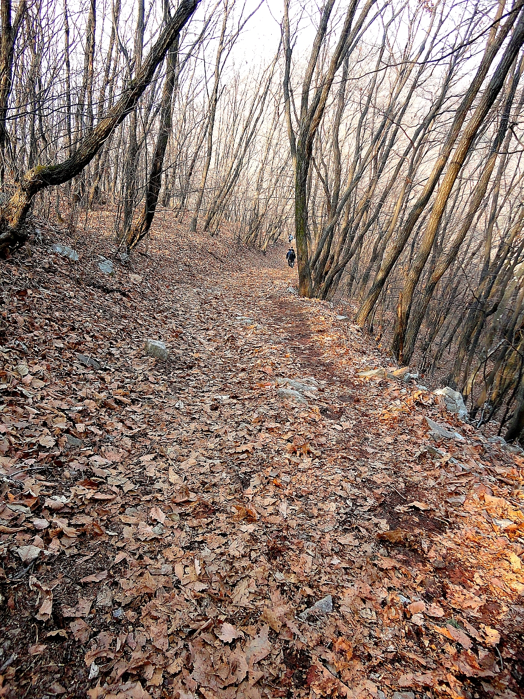 다시 지난가을에 수북하게 쌓인 낙엽들이 긴 겨울 폭설을 거둬내고 그때 그 모습 그대로 이른 봄 미풍에 추락한 채 말라지는 아기자기한 암릉길이다. 이 길을 지나 백두산 천지 닮은 호명호수까지의 3.7km 능선은 또 한 번 산이란 실체에 흠뻑 매료되게 한다.