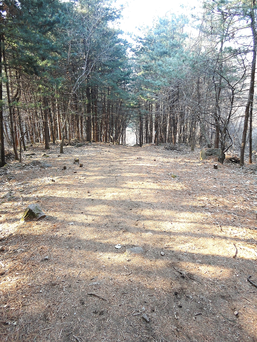 조종천 철교를 건너 초입부터 가파른 오르막을 땀 씻고 숨 고르는 정상까지의 2.7km 등산로도 산행의 묘미를 만끽하게 하지만 정상에서 기차봉까지 노송 줄지어 늘어선 능선 길은 그야말로 초봄 정취를 물씬 느끼게 한다. 하긴 이 정도의 산길이라면 계절에 상관없이 그 멋과 맛이 늘 일품일 거란 생각이 든다.