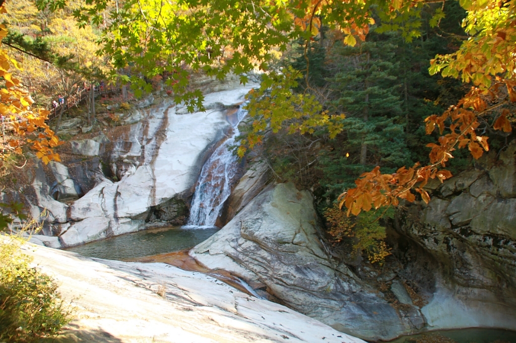 귀가 먹먹해지도록 세찬 굉음과 더불어 쏟아져 내리는 폭포 줄기, 청동빛 소와 담, 넓고 흰 암반 위를 부챗살처럼 펼쳐 흐르는 와폭 등이 연이어 나타난다. 그때마다 발길은 족쇄가 채워진 듯 멈추게 된다.