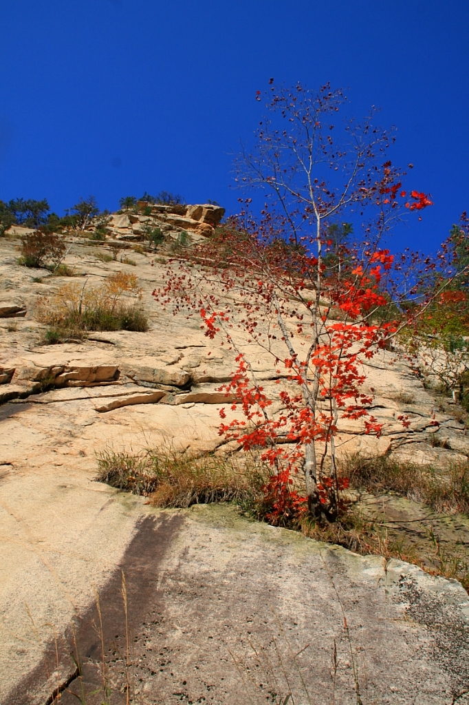 한그루 왜소한 단풍나무일지라도 거대한 암벽을 달리 치장한다.